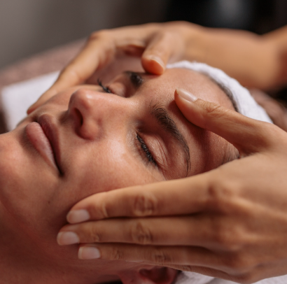 Reiniging – peeling – tonic – Bio Active Niacinamide –masker (tijdens inwerken handmassage)– calendula oil elixir + hoofd/schouder/nekmassage – dagcrème