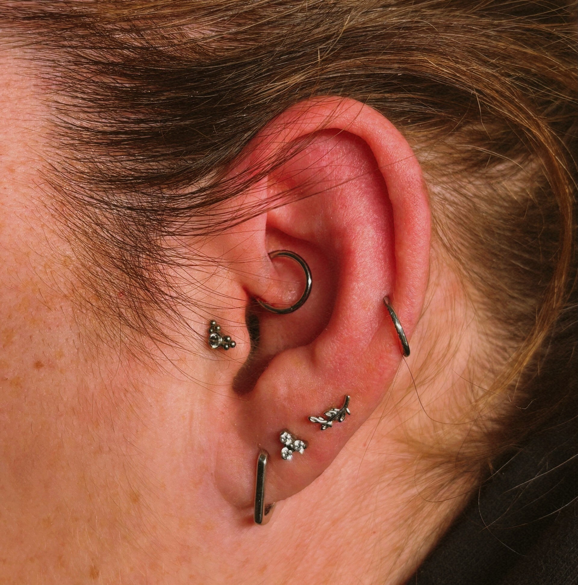 Je kan bij mij terecht voor alle oorpiercings die hier benoemd staan : Oorbellen, Helix, Forward helix, Flat, Tragus, Daith, Rook en Conch.